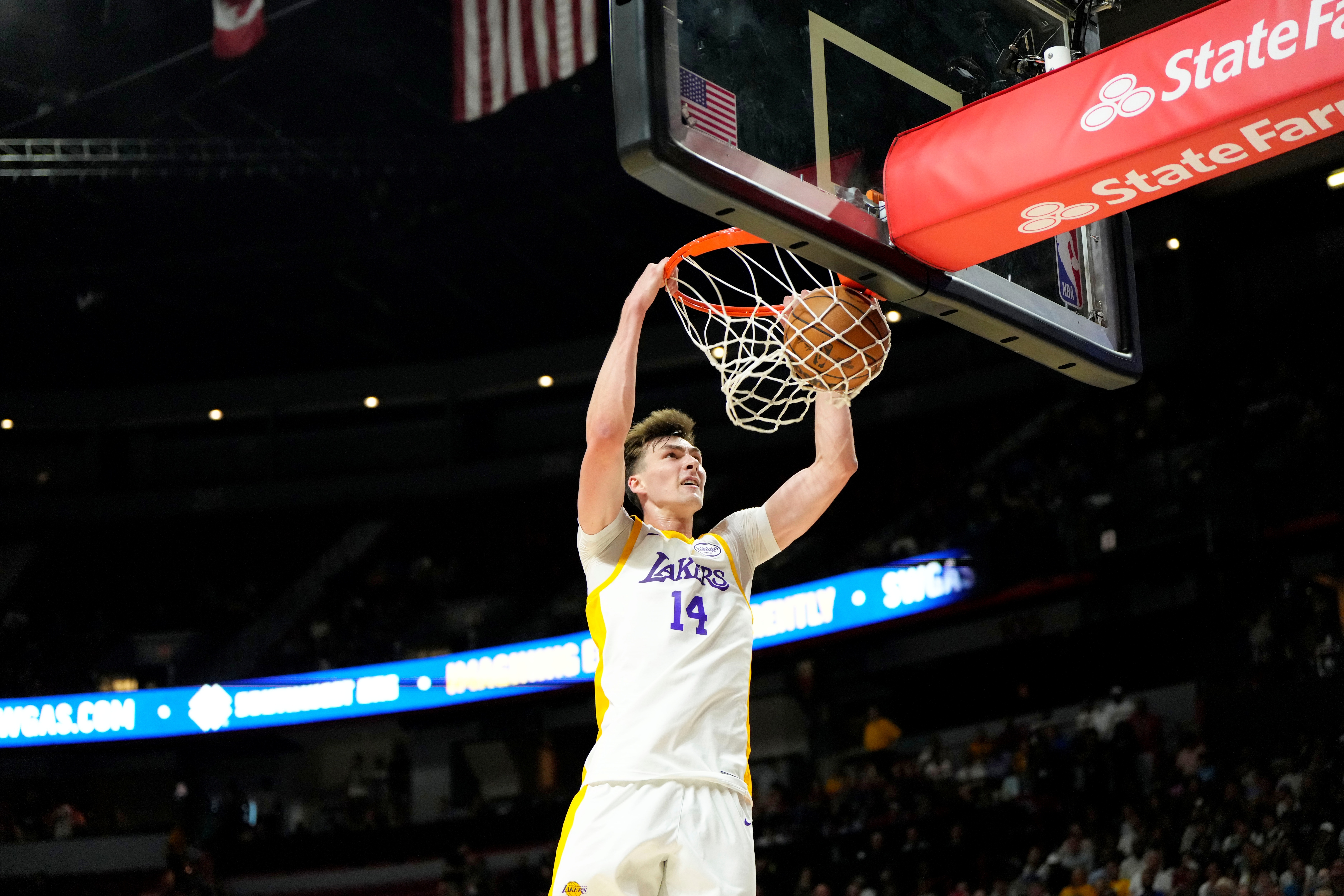 科林-卡斯爾頓上賽季曾為湖人效力16場,本賽季曾與灰熊簽下一份雙向合同,出戰(zhàn)10場,場均可以得到1.4分0.9籃板。