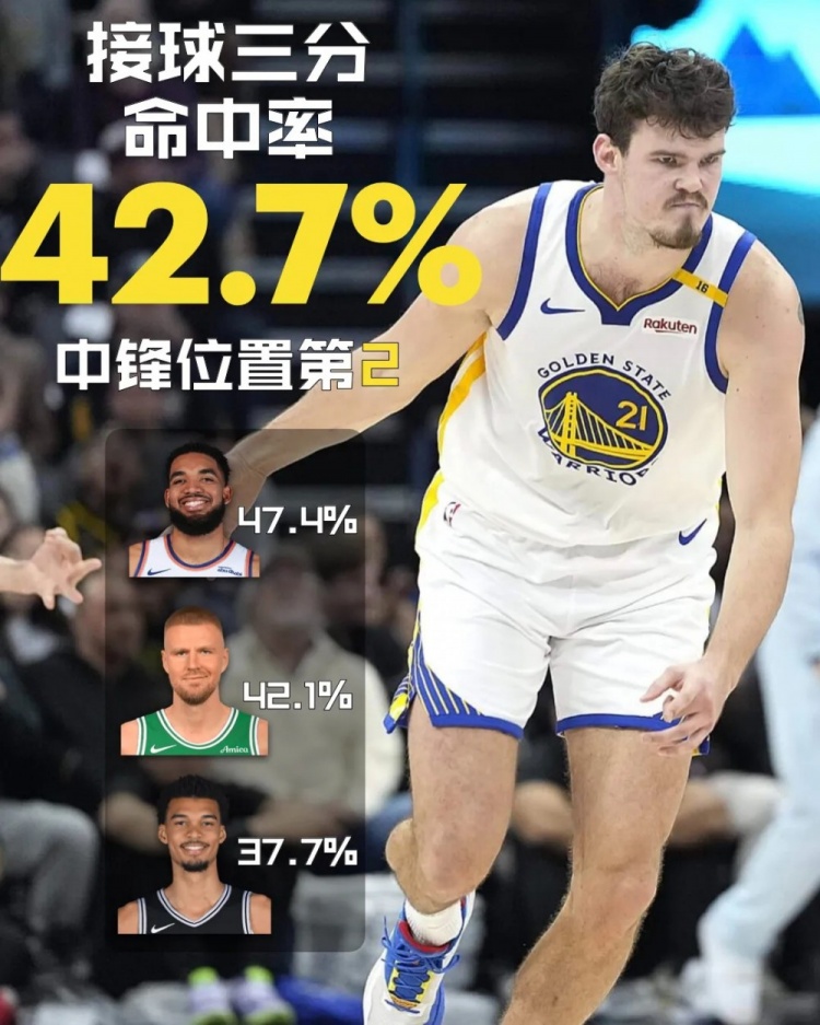 而當(dāng)年為什么勇士隊(duì)和唐斯傳過(guò)緋聞?無(wú)非就是這樣的空間型內(nèi)線,能讓“庫(kù)有引力”最大化。
