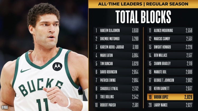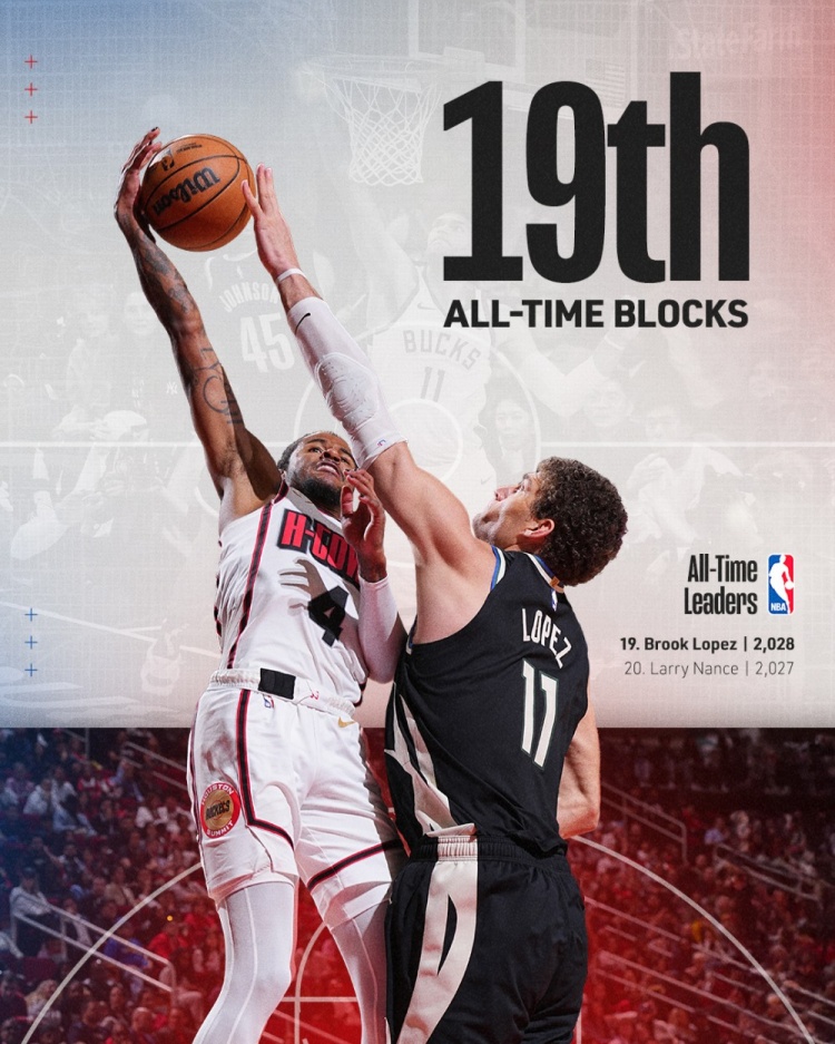 這樣一來,大洛佩斯生涯蓋帽數(shù)達(dá)到2028個,超越拉里-南斯(2027個)獨(dú)占?xì)v史第19位,下一步將追逐加內(nèi)特(2037)。