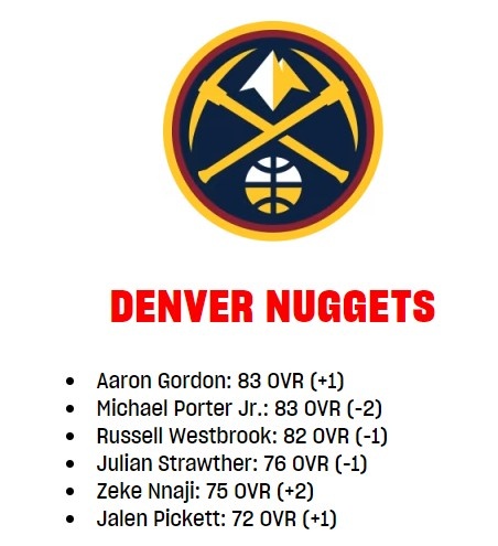 3月7日訊 NBA 2K官網(wǎng)更新了掘金球員的能力值情況,阿隆-戈登上雙、威少、小邁克爾-波特下降,具體如下: