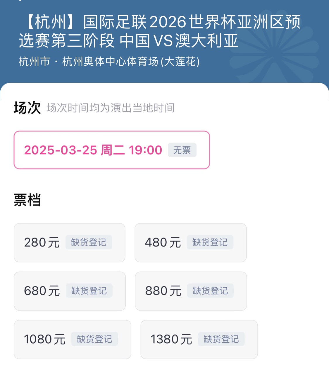 最后的撿漏機會?國足vs澳大利亞球票3月11日0:00停止退票