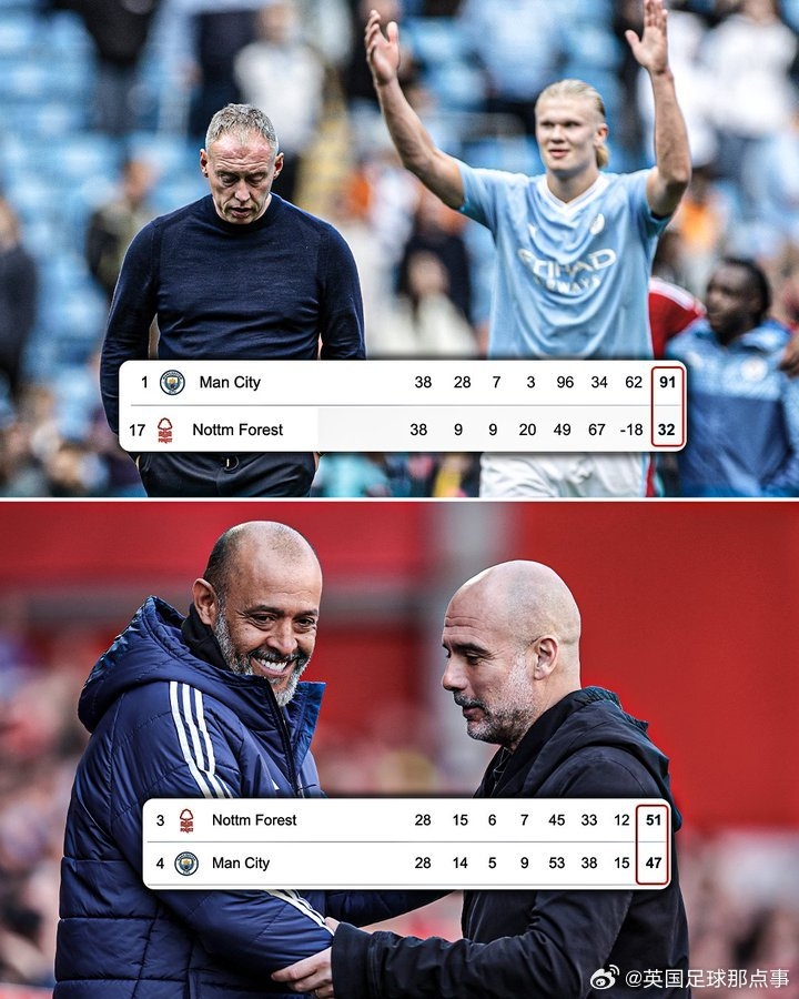 【巨大進(jìn)步】上賽季曼城領(lǐng)先森林59分,現(xiàn)在森林領(lǐng)先曼城4分