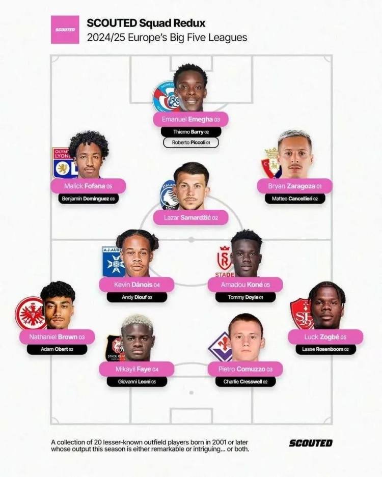 Scouted評選五大聯(lián)賽值得關(guān)注的U23球員
