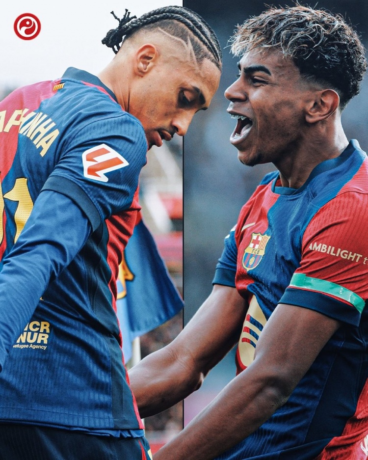 數(shù)據(jù)統(tǒng)計(jì)顯示,拉菲尼亞是本賽季西甲唯一在運(yùn)動(dòng)戰(zhàn)能夠創(chuàng)造機(jī)會(huì)50+的球員(57次),他在26輪聯(lián)賽貢獻(xiàn)13球7助攻;亞馬爾本賽季成功過(guò)人高達(dá)95次,比其他西甲球員至少多出23次,也是本賽季西甲唯一助攻上雙的球員(11次)。