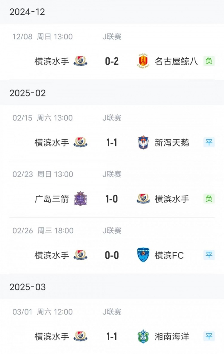 數(shù)據(jù)顯示,本賽季J聯(lián)賽戰(zhàn)罷5輪,橫濱水手還未嘗勝績,4輪聯(lián)賽(橫濱少賽一場)僅3平1負打進2球,目前積3分排在J聯(lián)賽積分榜第18位。而算上上賽季的話,橫濱水手在J聯(lián)賽已經(jīng)連續(xù)5場不勝(3平2負打進2球丟掉5球)。
