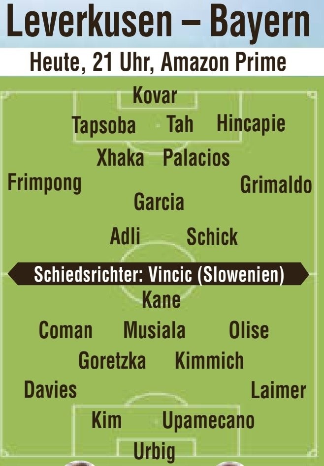 圖片報預測藥廠vs拜仁首發(fā):二門科瓦爾PK烏爾比希,希克凱恩對決