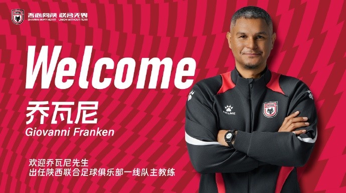 根據(jù)俱樂部發(fā)展需要,經(jīng)俱樂部研究決定,即日起由喬瓦尼-弗蘭肯(Giovanni Franken)先生擔任陜西聯(lián)合足球俱樂部一線隊主教練。