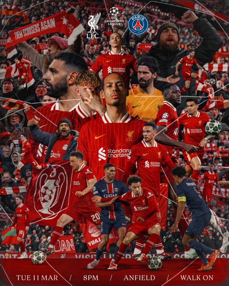 03月11日訊 歐冠1/8決賽次回合,利物浦主場對(duì)陣巴黎,首回合利物浦1-0占得先機(jī)。