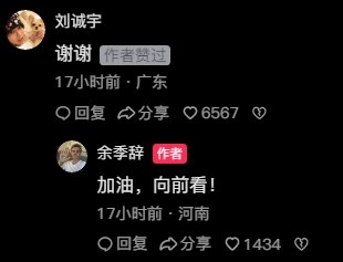 U20亞洲杯1/4決賽國青遺憾失利后,此役錯(cuò)失點(diǎn)球以及近距離絕佳良機(jī)的劉誠宇,成為了輿論當(dāng)中一些負(fù)面情緒攻擊的焦點(diǎn)。對此,一位網(wǎng)名“余季辭”的球迷在社媒發(fā)表長文安慰了劉誠宇,并向他送上了鼓勵(lì),劉誠宇本人也在評論區(qū)留言“謝謝”。