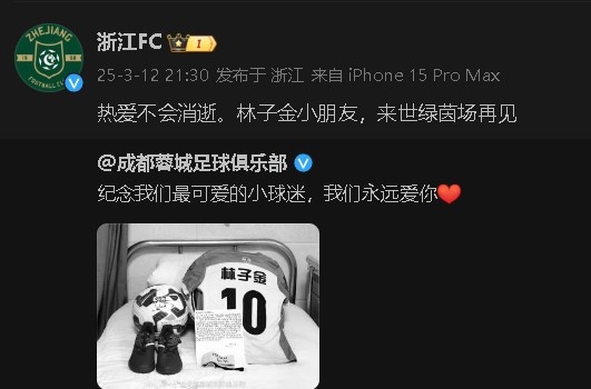 浙江隊(duì)社媒發(fā)文悼念:熱愛(ài)不會(huì)消逝,林子金小朋友來(lái)世綠茵場(chǎng)再見(jiàn)