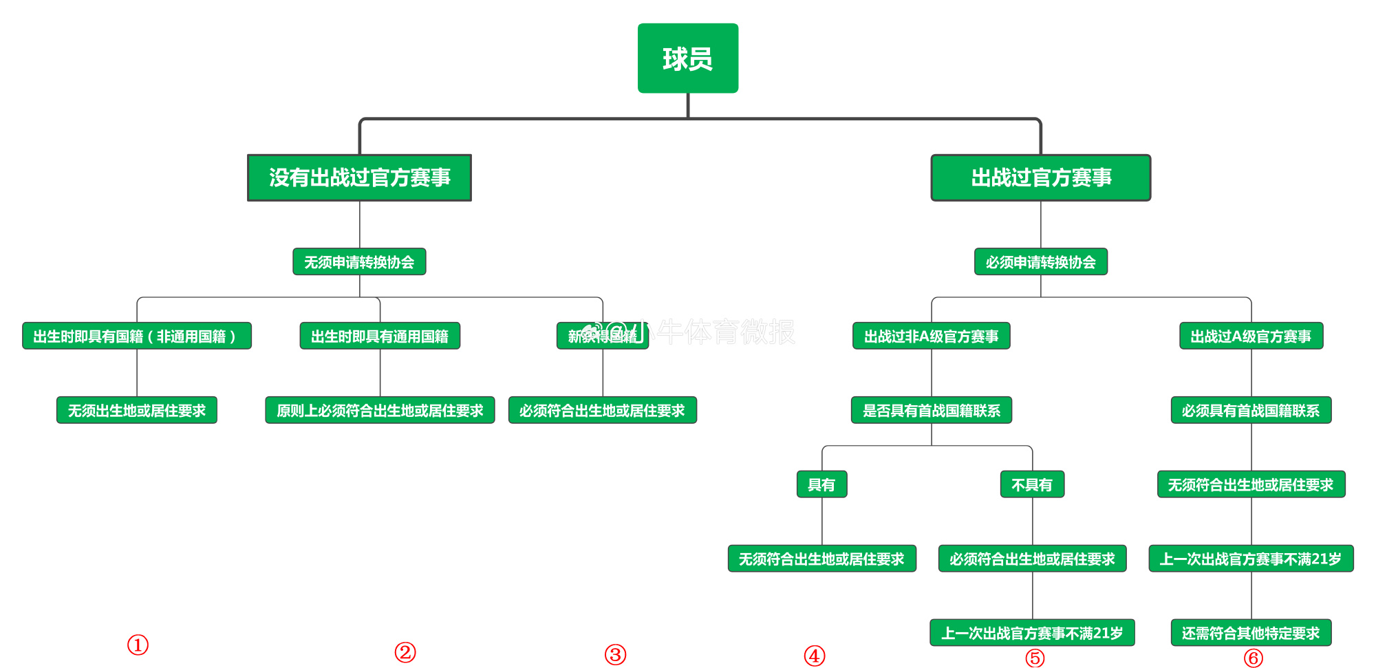 如果球員沒(méi)有踢過(guò)官方賽事,新獲得中國(guó)國(guó)籍,且從10到18歲間開(kāi)始在內(nèi)地居住,需要申請(qǐng)資格并獲得PSC-of-FT決議。反之,球員是從18歲以后才開(kāi)始居住的,沒(méi)有決議。足協(xié)自己評(píng)估是否符合要求,自己承擔(dān)風(fēng)險(xiǎn)。實(shí)在不清楚的,可以申請(qǐng)PSD幫助,由他們進(jìn)行評(píng)估,但評(píng)估沒(méi)有法律效力。