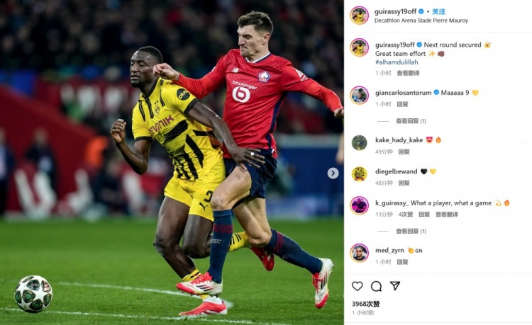 吉拉西也在賽后通過社媒曬出自己的比賽照,并配文:“成功晉級下一輪!全隊發(fā)揮很棒!”
