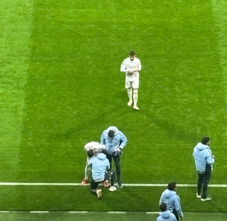 希望無礙,在維尼修斯踢點(diǎn)球的間隙,巴爾韋德在場(chǎng)邊接受治療