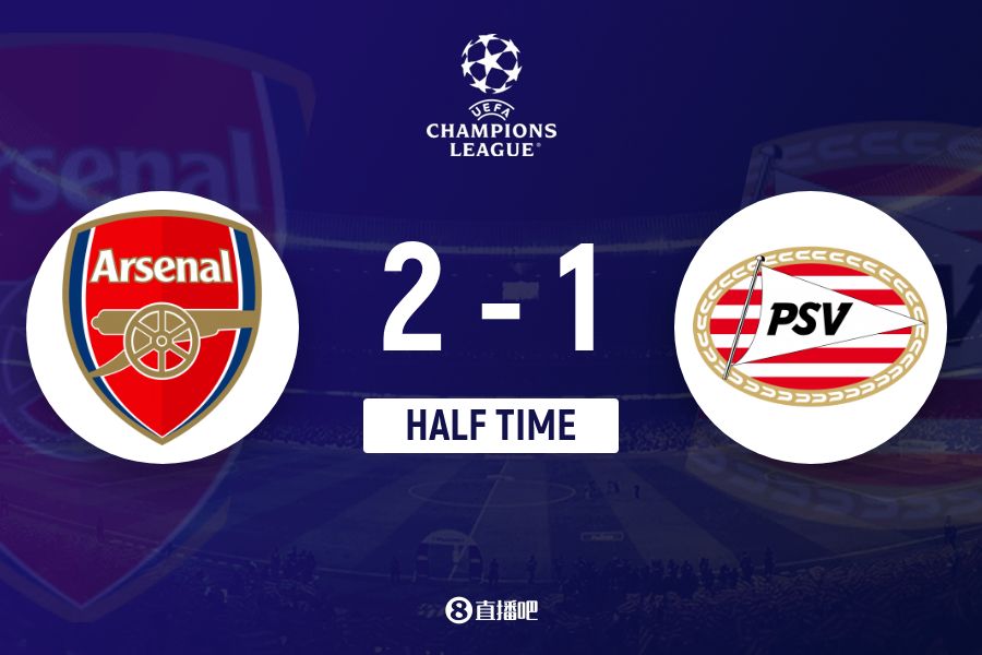 上半場(chǎng)傷停補(bǔ)時(shí)1分鐘,半場(chǎng)結(jié)束,阿森納暫2-1埃因霍溫。