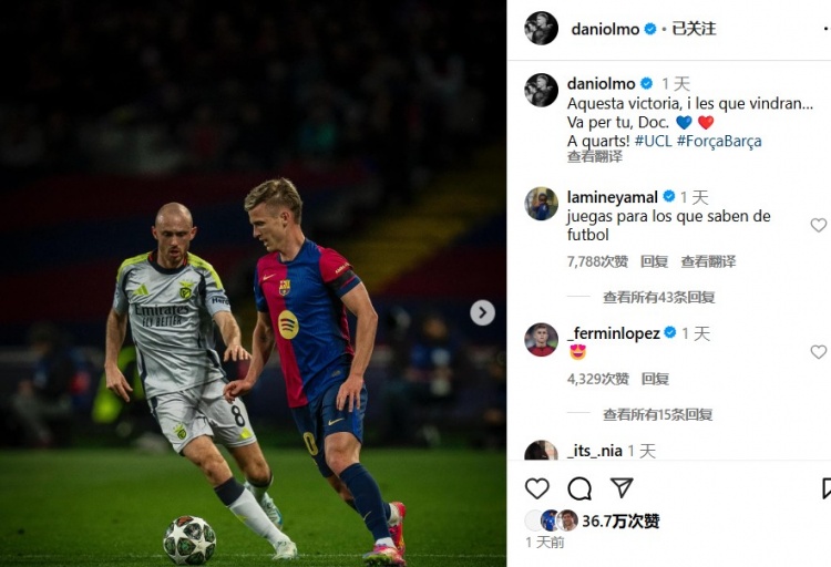 亞馬爾在評論區(qū)表示道:“你為那些懂足球的人踢球”。