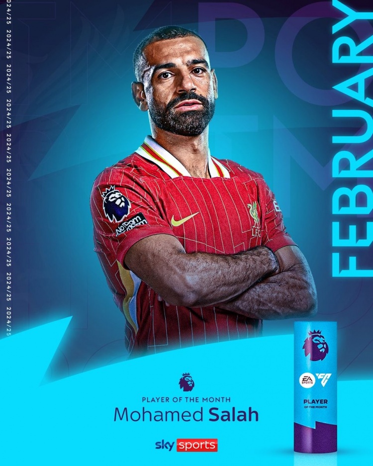 3月13日訊 英超官方宣布,利物浦邊鋒薩拉赫當(dāng)選為2月最佳球員。