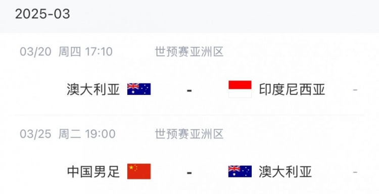本月世預(yù)賽,澳大利亞將主場戰(zhàn)印尼,客場對陣中國隊。
