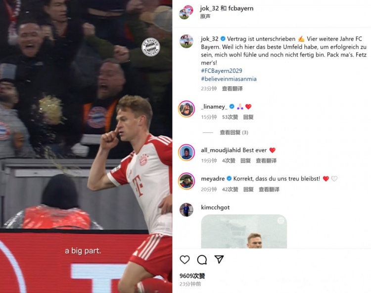 基米希轉(zhuǎn)發(fā)了拜仁的官宣視頻,并配文:“合同已簽署??我將在拜仁再戰(zhàn)4年。因?yàn)檫@里有我取得成功的最佳環(huán)境,我在這里過得很舒服,并且還有任務(wù)尚未完成。讓我們開始為之努力吧!”