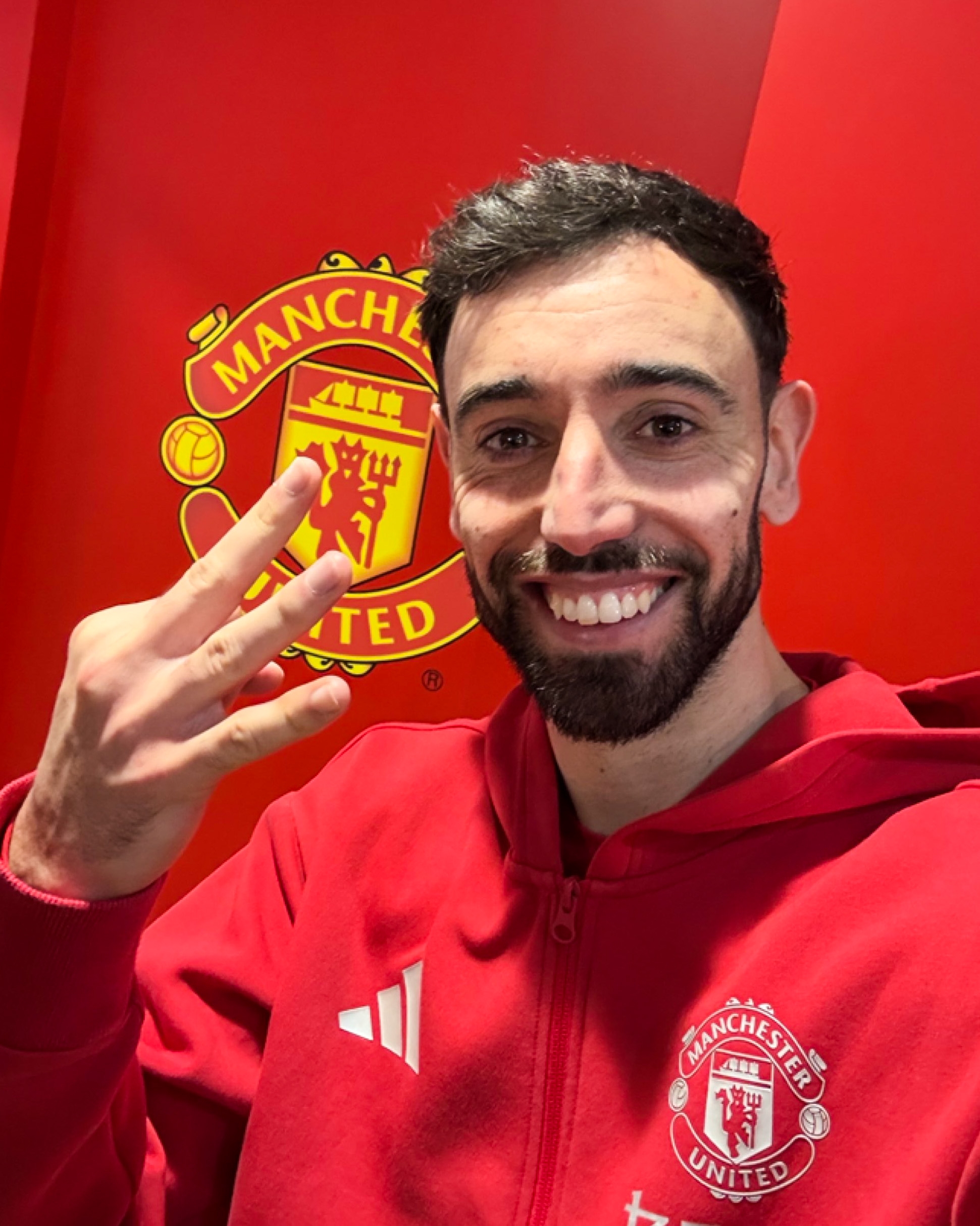 歐聯(lián)杯官推也曬出了B費賽后的自拍照,他也比出了“3”的手勢象征自己本場的帽子戲法。