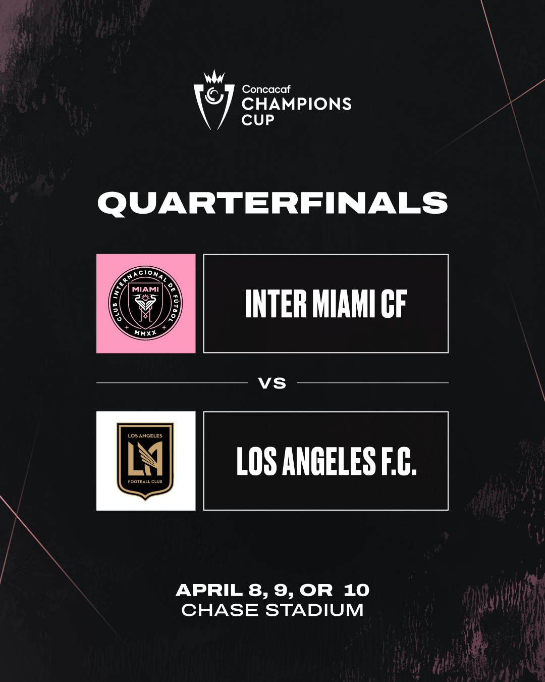 中北美冠軍杯1/4決賽,邁阿密國際將對陣洛杉磯FC,具體時間未定。
