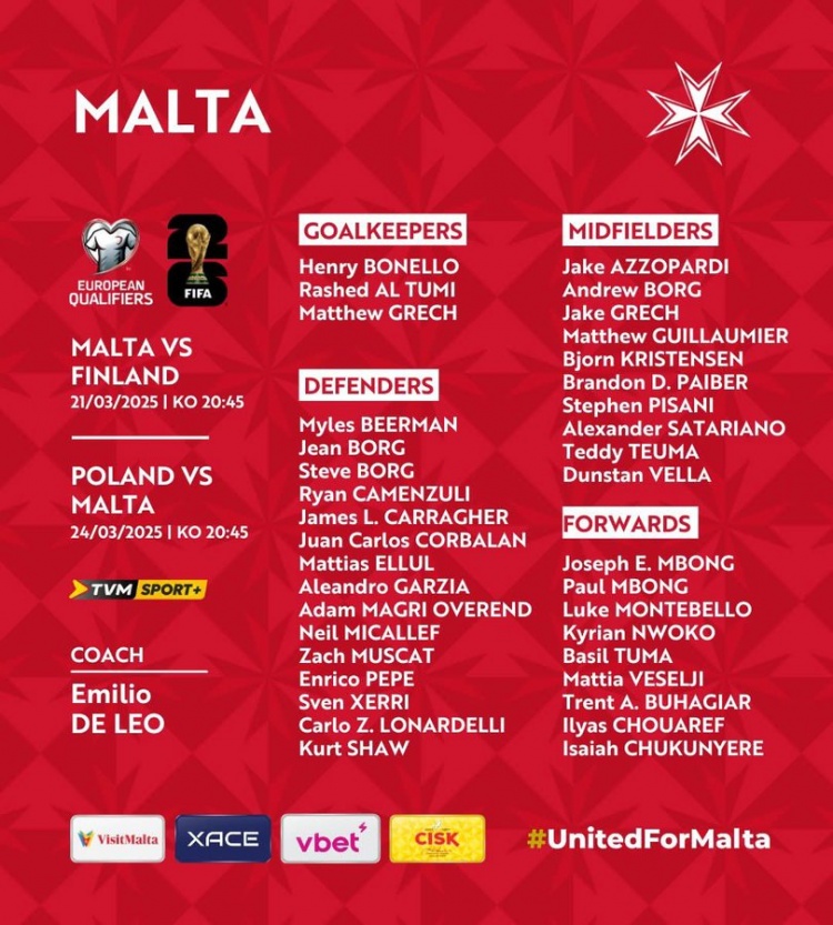 馬耳他國家隊(duì)目前FIFA排名168位,本月他們將在世預(yù)賽中面對芬蘭、波蘭。