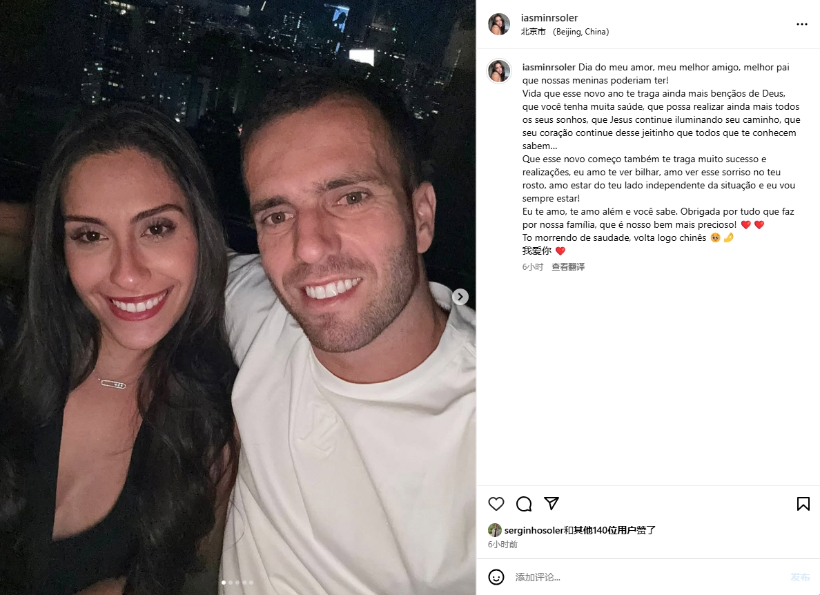 03月15日訊 今天是新晉歸化國(guó)腳塞爾吉尼奧的30歲生日,塞爾吉尼奧的妻子伊亞斯敏在社媒上用葡語(yǔ)和中文深情告白丈夫。