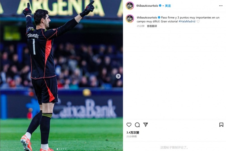 他也在賽后通過社媒曬出比賽照,并配文:“在一個非常艱難的客場向前邁出堅(jiān)定一步并取得3分,很棒的勝利!#馬德里前進(jìn)????”