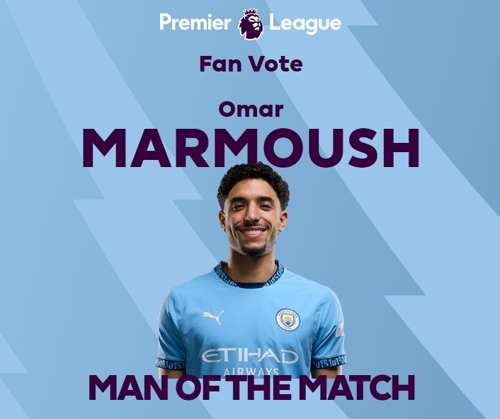 造點(diǎn)+世界波!官方:馬爾穆什被票選為曼城vs布萊頓全場最佳