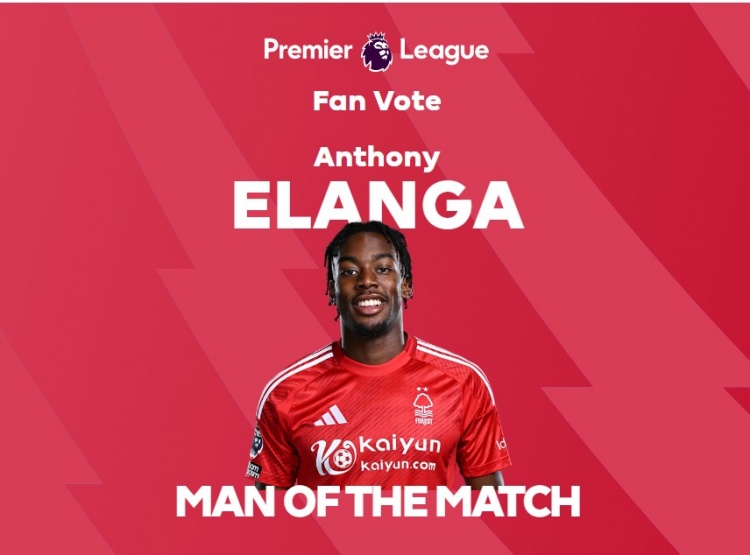 梅開二度!官方:伊蘭加被票選為諾丁漢森林vs伊鎮(zhèn)全場(chǎng)最佳