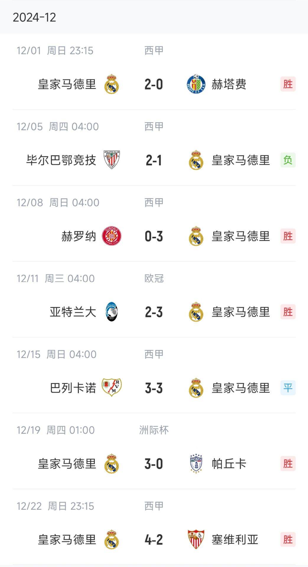 12月是皇馬3天1賽開始的月份,這個月他們21天內(nèi)打了7場,包括西甲、歐冠和洲際杯。