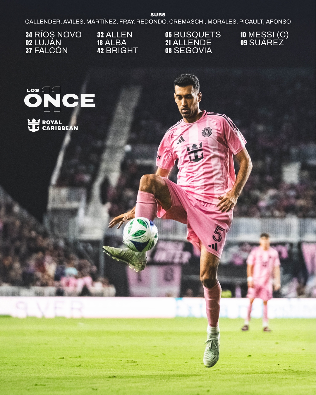 邁阿密國際首發(fā):34-羅科-里奧斯、2-盧揚、37-法爾肯、32-阿倫、18-阿爾巴、42-楊尼克-布萊特、5-布斯克茨、21-阿連德、8-特拉斯科、10-梅西、9-蘇亞雷斯