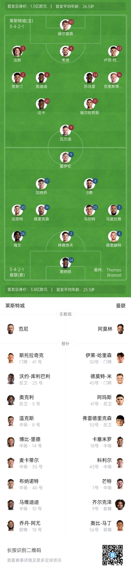 談及本場的首發(fā)陣容,阿莫林表示:“我們覺得需要輪換一些球員,因為我們要為這場比賽保持活力。卡塞米羅已經連續(xù)踢了三場比賽,所以讓他休息一下是件好事。”