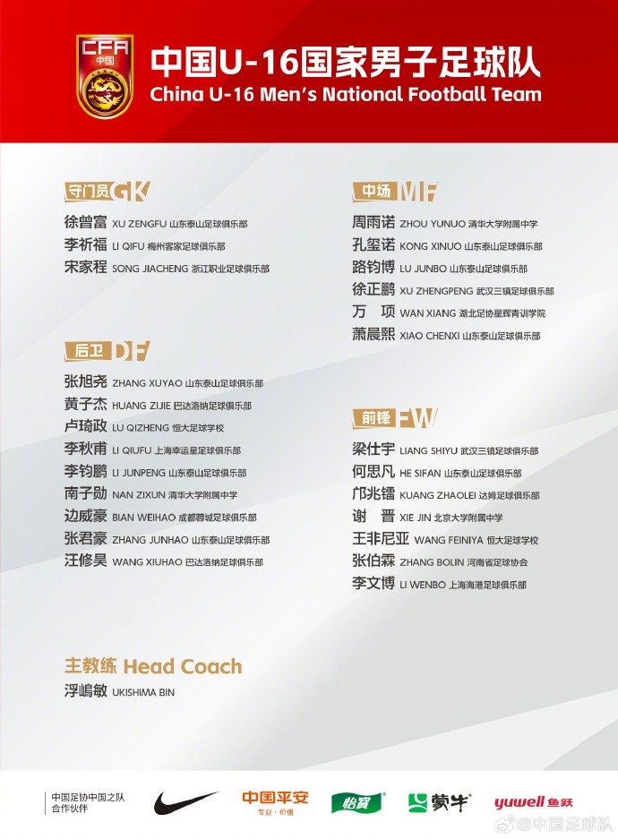 U16國(guó)足集訓(xùn)名單:梁仕宇、萬(wàn)項(xiàng)、鄺兆鐳在列,泰山8人