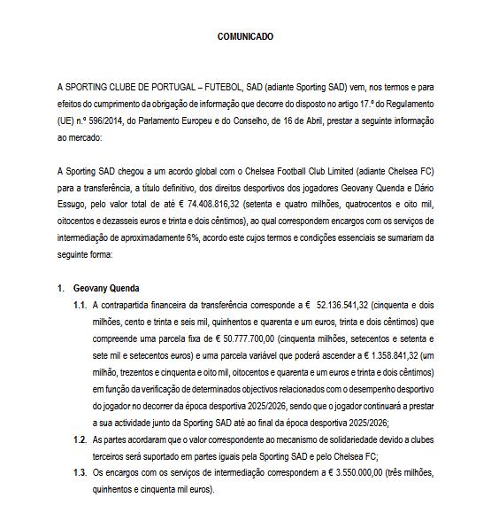 昆達(dá)轉(zhuǎn)會(huì)費(fèi)為52136541.32歐元(約5214萬(wàn)歐),包括固定部分50777700.00歐元(約5078萬(wàn)歐萬(wàn)歐)和可變部分1358841.32歐元(約136萬(wàn)歐),可變部分將根據(jù)球員在2025/2026賽季的體育表現(xiàn)達(dá)成情況支付。球員將繼續(xù)為葡體效力至2025/2026賽季結(jié)束。