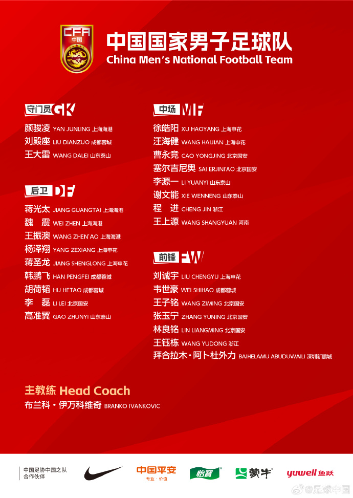 規(guī)則規(guī)定,中國隊本場比賽至多報名23名人。從相關(guān)訊息渠道獲知,根據(jù)球隊的訓(xùn)練情況,落選球隊本場比賽報名陣容的4名球員分別是來自國青前鋒王鈺棟、劉誠宇、中場球員程進(jìn)、邊后衛(wèi)王振澳,歸化新人塞爾吉尼奧確定入選。