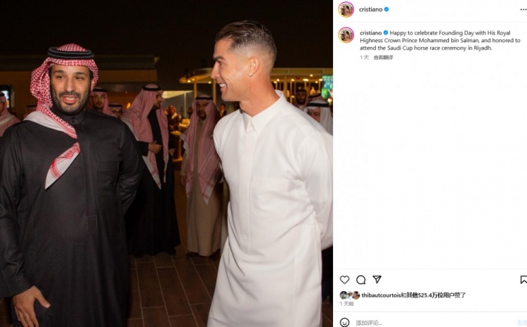 2月24日訊 C羅此前更新了社交媒體,曬出與沙特王儲(chǔ)薩勒曼的合照,在2月22日C羅出席了沙特的相關(guān)活動(dòng)。