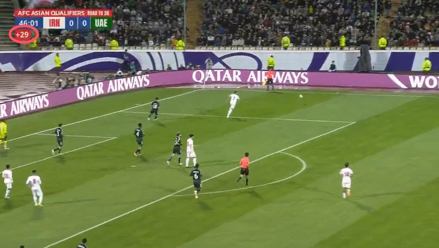 03月21日訊 伊朗vs阿聯(lián)酋比賽恢復(fù)進(jìn)行!上半場比賽補(bǔ)時(shí)29分鐘!