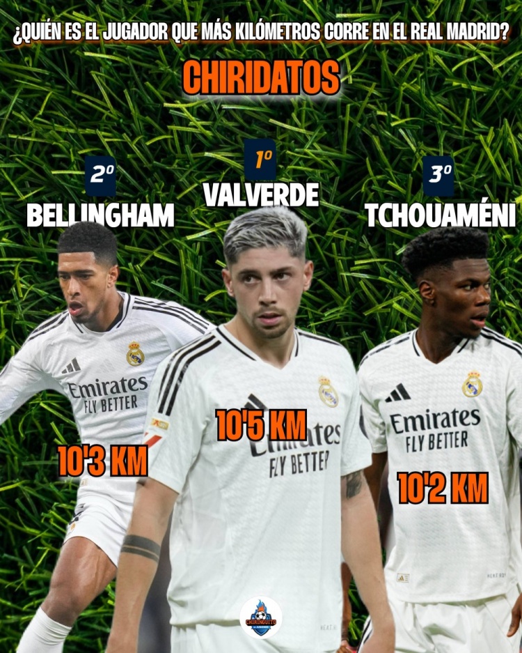 巴爾韋德本賽季場均跑動10.5km皇馬隊內(nèi)最多,貝林瓊阿梅尼二三位