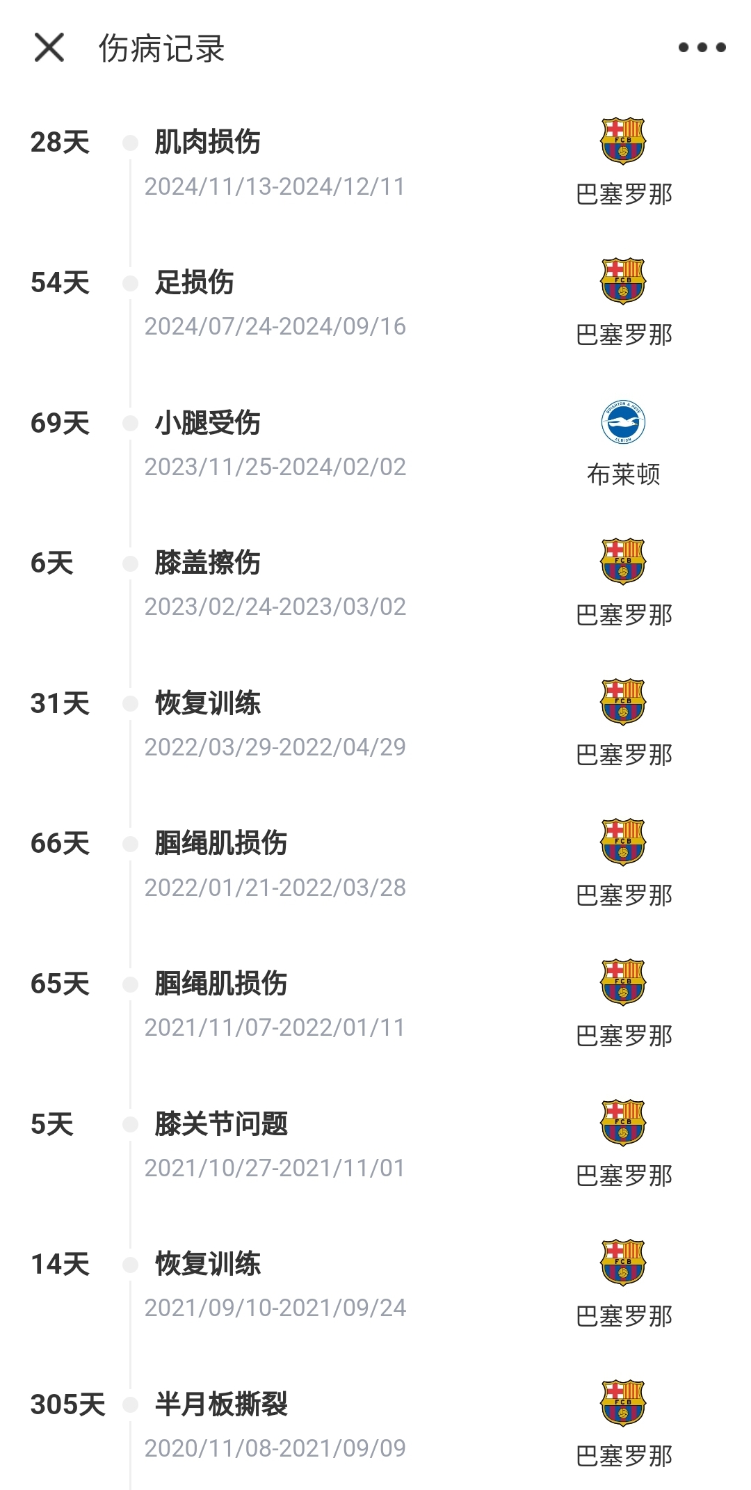 2020-2021賽季,法蒂開賽10場比賽貢獻(xiàn)5球2助,隨后遭遇半月板撕裂重傷,缺陣長達(dá)1年時間。2021年10月,巴薩宣布與傷愈歸來的法蒂續(xù)約6年至2027年,據(jù)悉年薪1400萬歐。