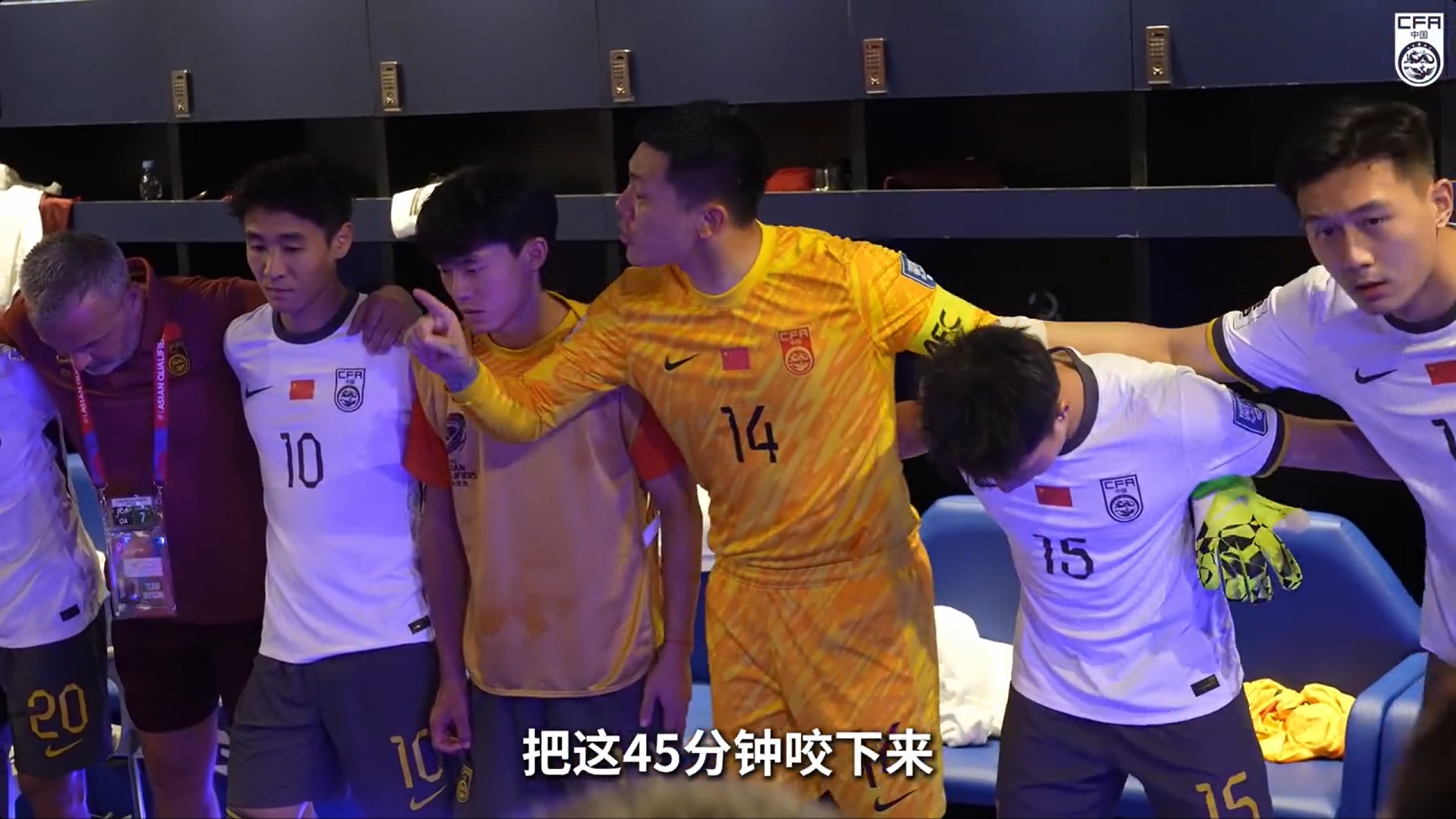 國(guó)足官方發(fā)布球隊(duì)0-1不敵沙特的微紀(jì)錄片,由于林良銘上半場(chǎng)最后階段吃到紅牌被罰下,國(guó)足下半場(chǎng)只能以十人應(yīng)戰(zhàn),隊(duì)長(zhǎng)王大雷中場(chǎng)休息時(shí)也在更衣室鼓勵(lì)隊(duì)友。