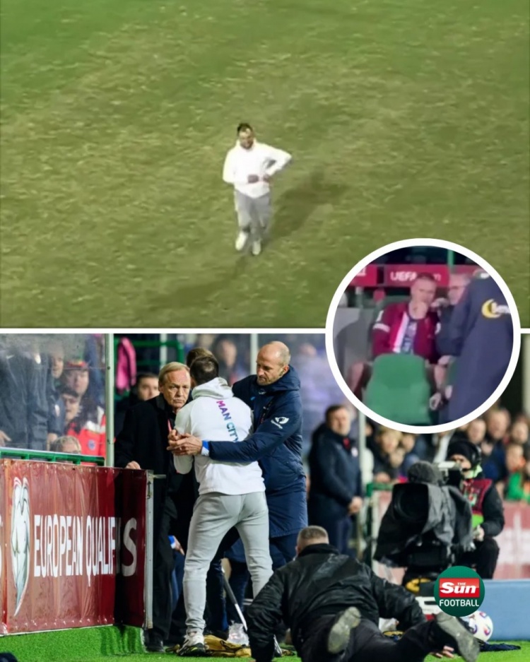 在這場(chǎng)比賽中,哈蘭德在比賽的第七十八分鐘被替換下場(chǎng)。當(dāng)這名球迷沖入球場(chǎng)時(shí),哈蘭德正坐在替補(bǔ)席上觀看比賽。在他沖向哈蘭德的時(shí)候,他同時(shí)把他的手伸入了自己的口袋。