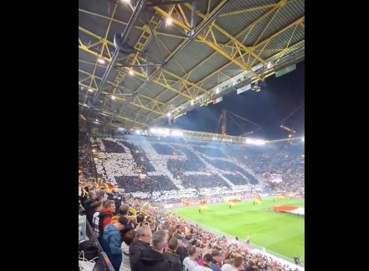 3月24日訊 德國在歐國聯(lián)八強戰(zhàn)次回合再戰(zhàn)意大利,賽前多特蒙德的主場球迷們打出了巨型TIFO致敬德國足協(xié)成立125周年。
