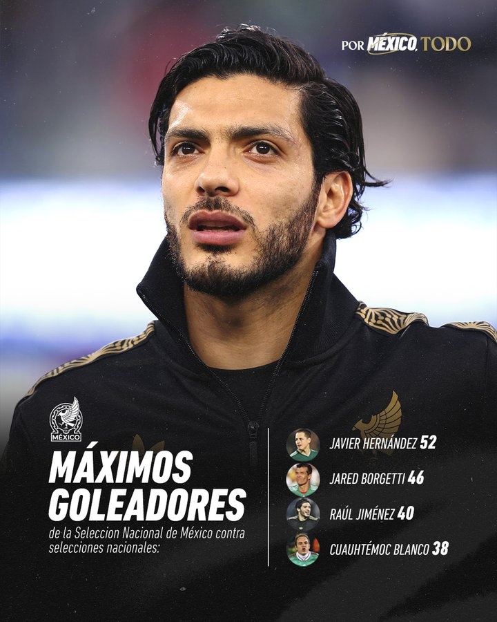 憑借著兩個進球,勞爾-希門尼斯以40球超越了夸烏特莫克-布蘭科,現(xiàn)在來到了墨西哥國家隊歷史射手榜第三的位置,僅次于46球的哈雷德-博爾格蒂和52球的“小豌豆”哈維爾-埃爾南德斯。