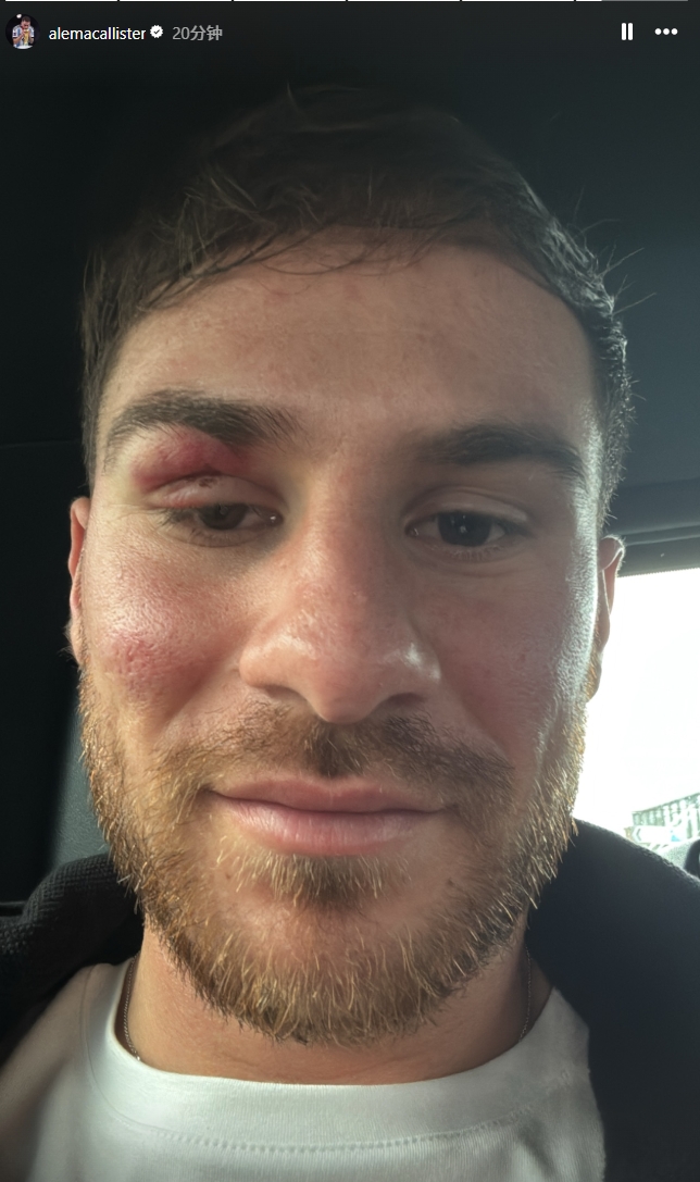 今天麥卡利斯特曬出了自拍,可以清楚看到他臉上的創(chuàng)傷,但盡管如此,贏球后麥卡利斯特的心情看上去不錯。