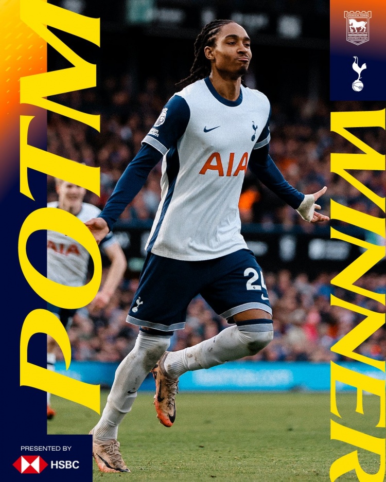 打進(jìn)1球!熱刺官方:斯賓塞當(dāng)選4-1伊普斯維奇隊內(nèi)最佳球員