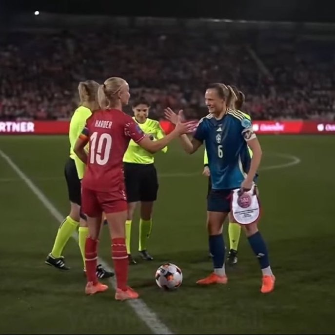 丹麥女足隊長佩妮萊-哈德爾和瑞典女足隊長馬達萊娜-埃里克松都效力于拜仁女足,她們是一對情侶,已經(jīng)訂婚,最近兩支國家隊在歐國聯(lián)碰面,兩人作為隊長在賽場上碰面。