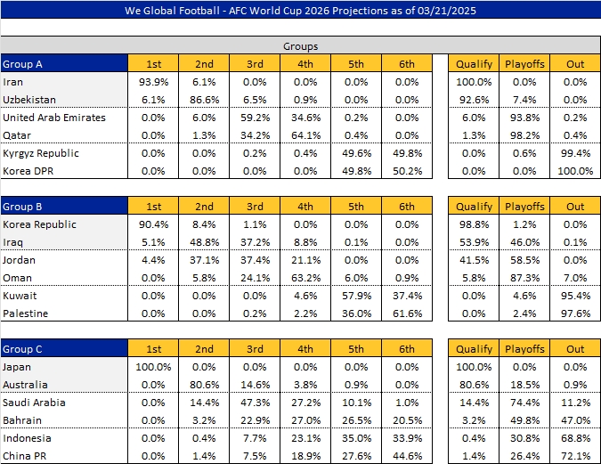 最新國足出線概率:直通美加墨1.4%,晉級(jí)下一輪26.4%,出局72.1%