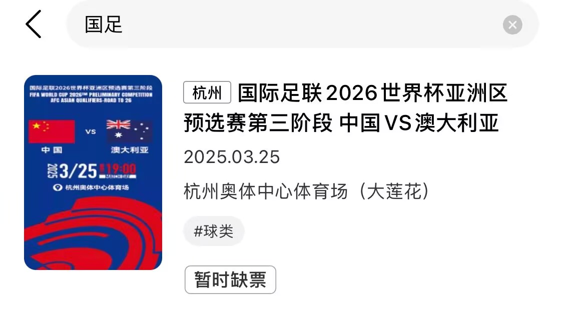 有錢也買不到了!黃牛平臺(tái)顯示,國(guó)足vs澳大利亞已缺票