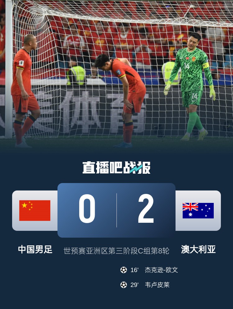 中國男足主場迎戰(zhàn)澳大利亞。黃政宇滑倒送禮+王大雷黃油手致丟球,國足主場0-2不敵澳大利亞,國足3連敗+連續(xù)2場遭零封。