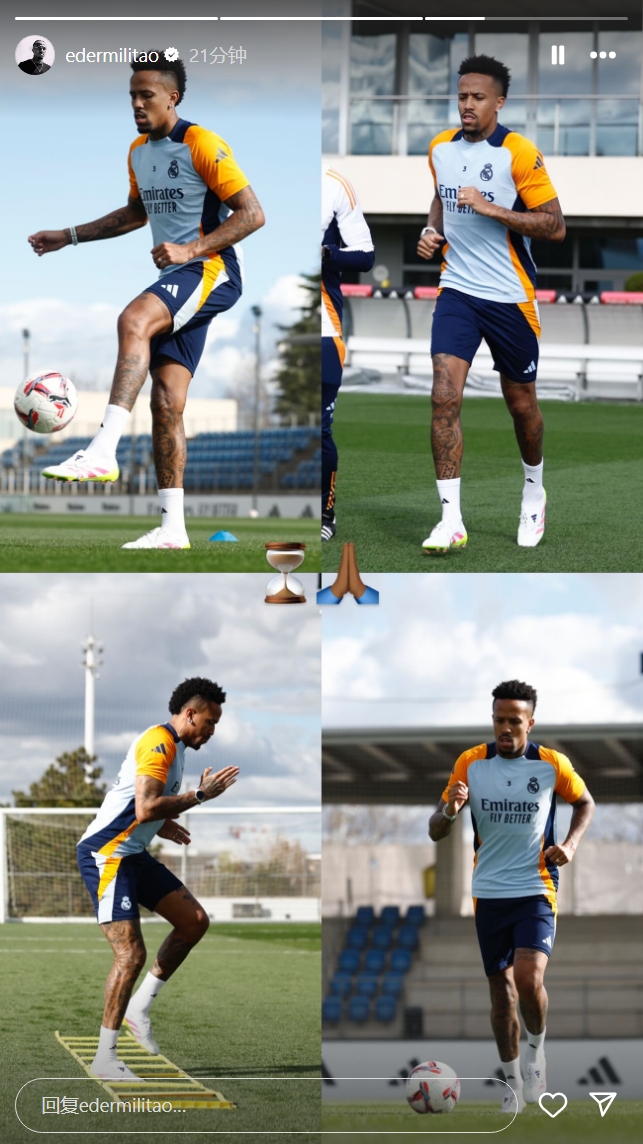 3月26日訊 今日米利唐更新個人社媒,曬出了自己恢復(fù)場地訓(xùn)練的照片,并配上了沙漏和祈禱的表情。